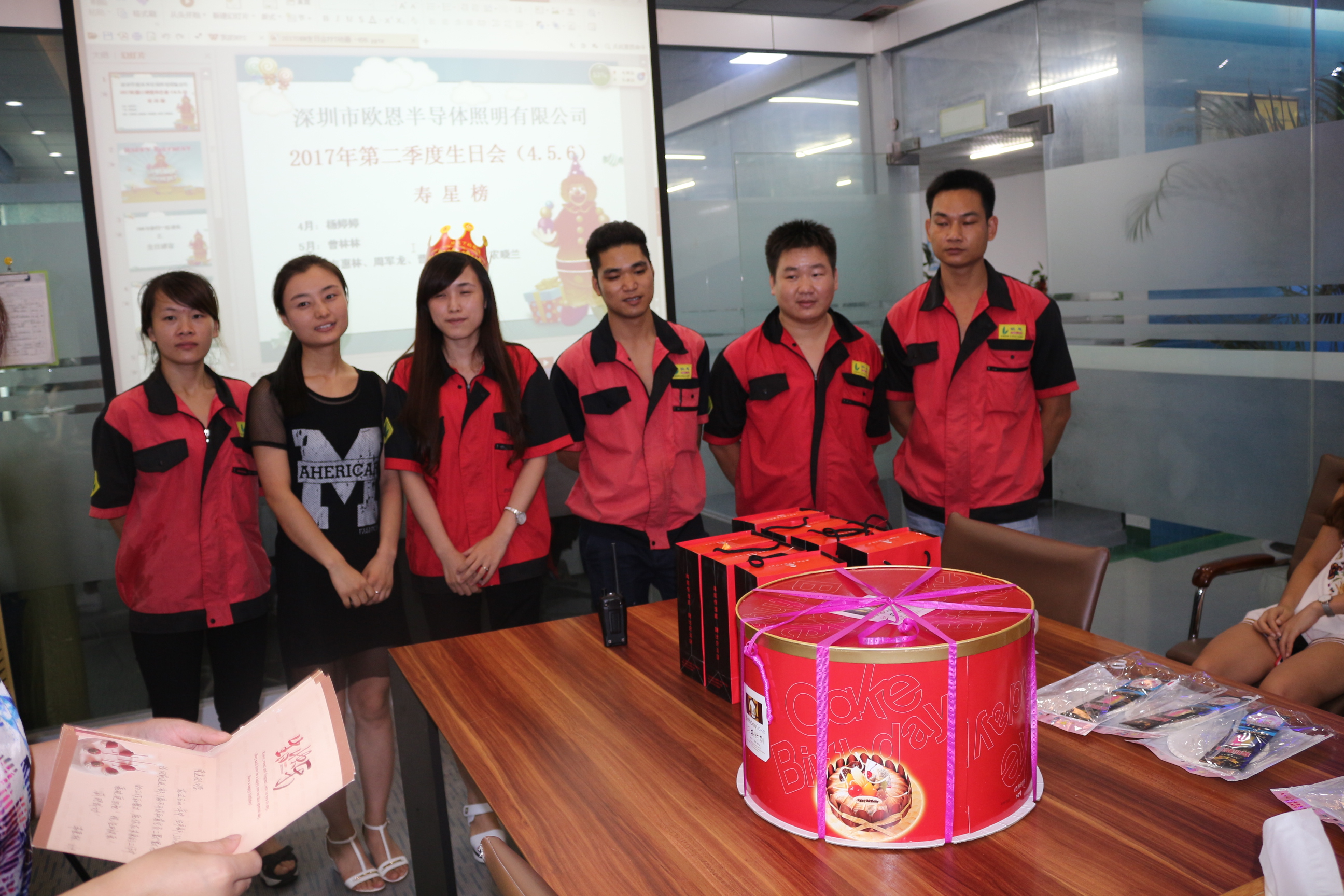 為弘揚公司企業(yè)文化,讓每位員工感受到集體的溫暖與關懷,深圳歐恩半導體照明為本季度過生日的家人:曾林林,楊婷婷、韋惠林、周軍龍、何丁、曹建剛、農(nóng)曉蘭,為這幾個同事精心送去生日的祝福!生日蛋糕、鮮花和祝福活動,在這特別的日子里,企業(yè)對員工長期以來的辛勤工作給予了肯定和感謝,也表達公司對員工的點滴關懷。塑造優(yōu)良的人性化管理,促進員工對企業(yè)的信任,推動企業(yè)良性健康發(fā)展。