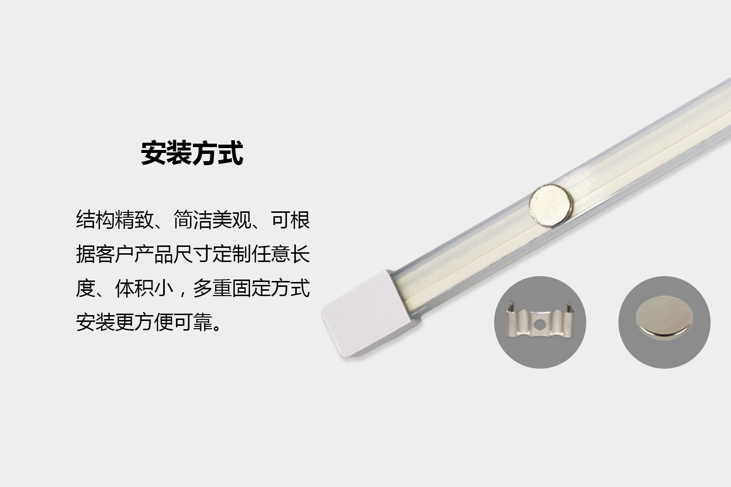 冷柜燈: 220V燈板一體化設(shè)計,無需額外電源,簡潔大方,采用磁鐵燈夾,安裝簡便 。