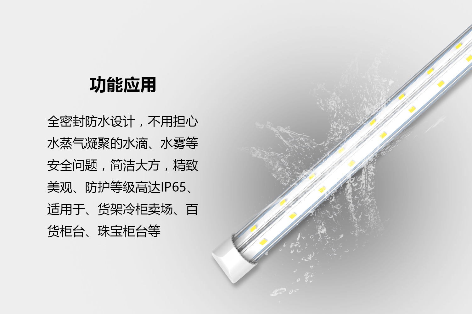 冷柜燈:全密封防水設(shè)計,IP65,不再擔(dān)心水蒸氣凝聚的水滴、水霧,的安全問題